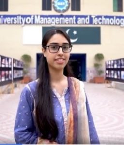 Imaan is an outstanding student who excelled in both her Matriculation and Intermediate exams. However, her family was in no position to afford her education in a private sector university. Determined to get enrolled at UMT, she applied for a scholarship through the ILM Fund. Imaan was awarded the scholarship in consideration of her excellent academic and extracurricular performance over her student life. She has since been making her mark in both academic and co-curricular activities at UMT, without worrying about fees and other expenditure.